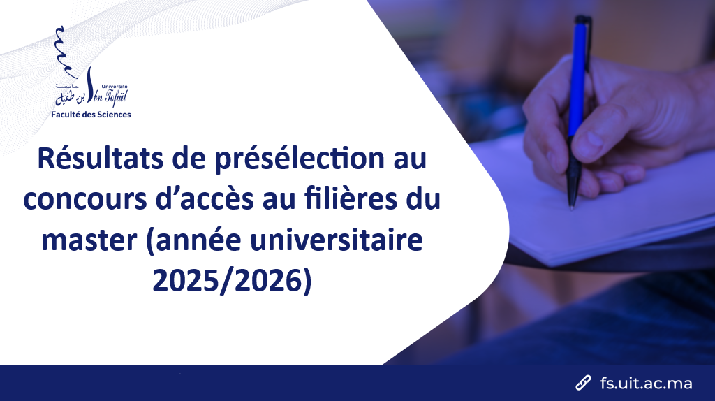 Il est porté à la connaissance des étudiants que les résultats de la présélection pour les concours d’accès aux masters de la faculté des sciences (année universitaire 2025/2026) sont désormais consultables en ligne.